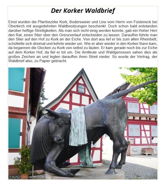(Gesetz zur Erhaltung und Nutzung des Korker Waldes) und die "Stierlaufsaga". |
